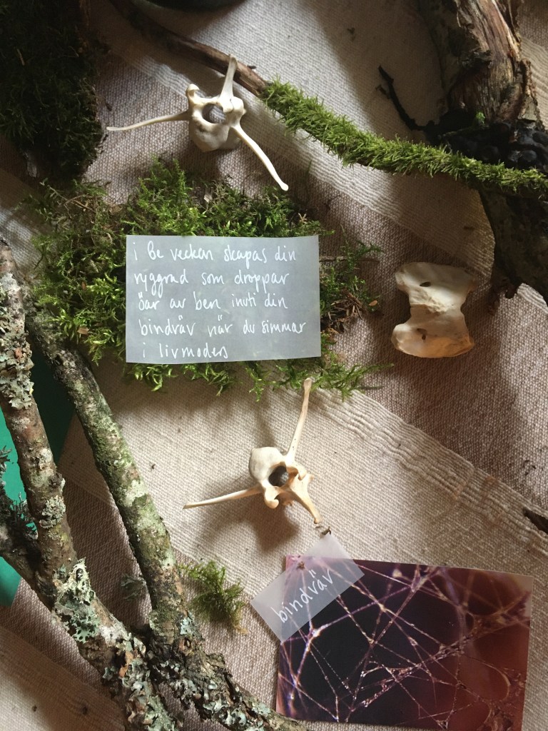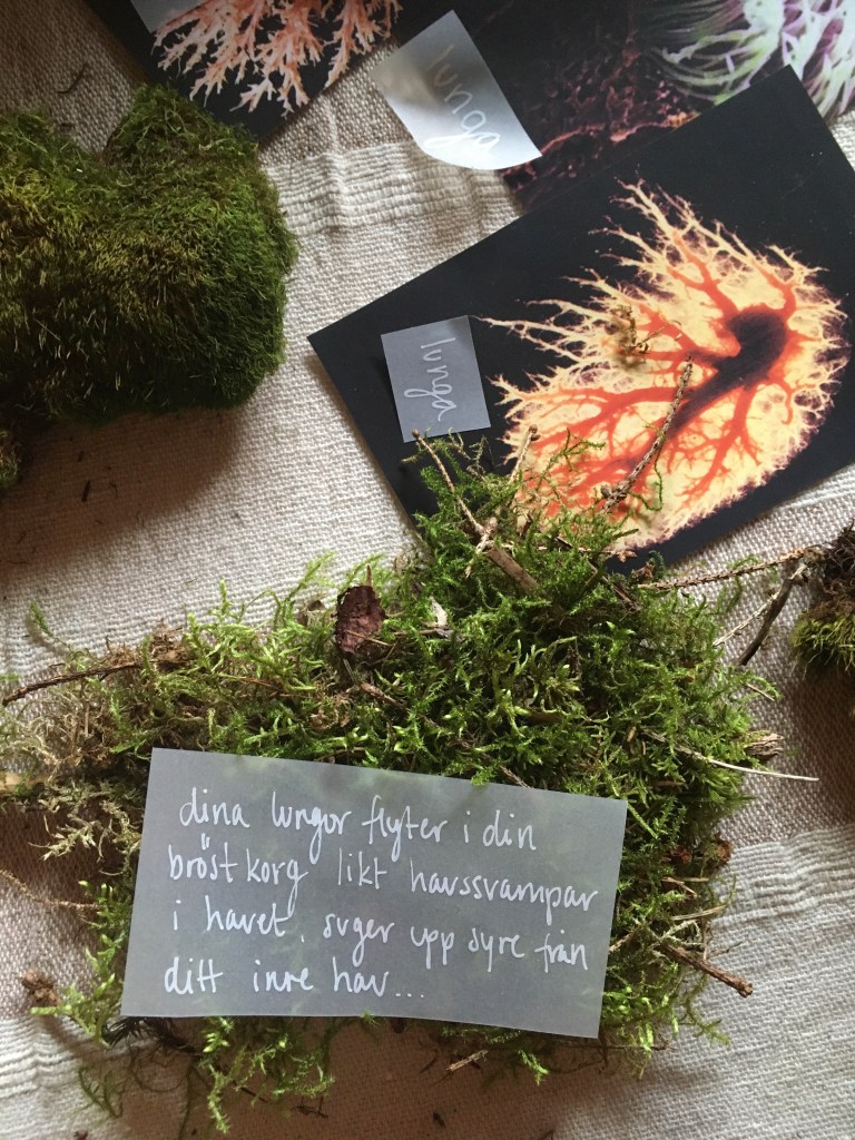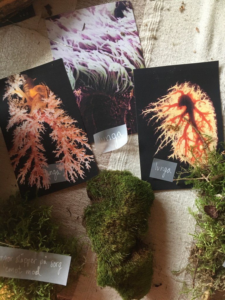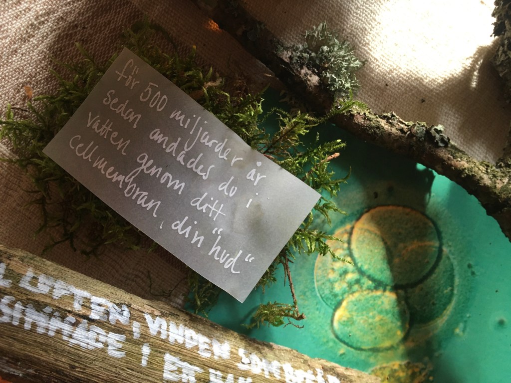 Dear Earthling is an interactive one-to-one performance guiding one person at a time through a ritual which brings us close to nature’s cycles of life, death and transformation. It explores our relation to the more-than-human and questions our anthropocentric world-view. Inspired by humans evolutionary and embryological journey the ritual leads the audience through a room of their lungs, ocean and birth, a room of their heart, wood and movement, and lastly their skeleton, soil and death. During a little less than an hour the audience are invited to listen, smell, move, write, touch and be touched.