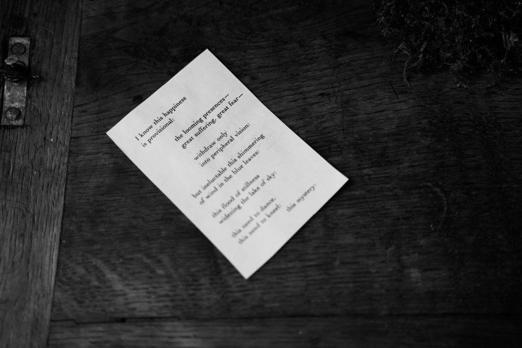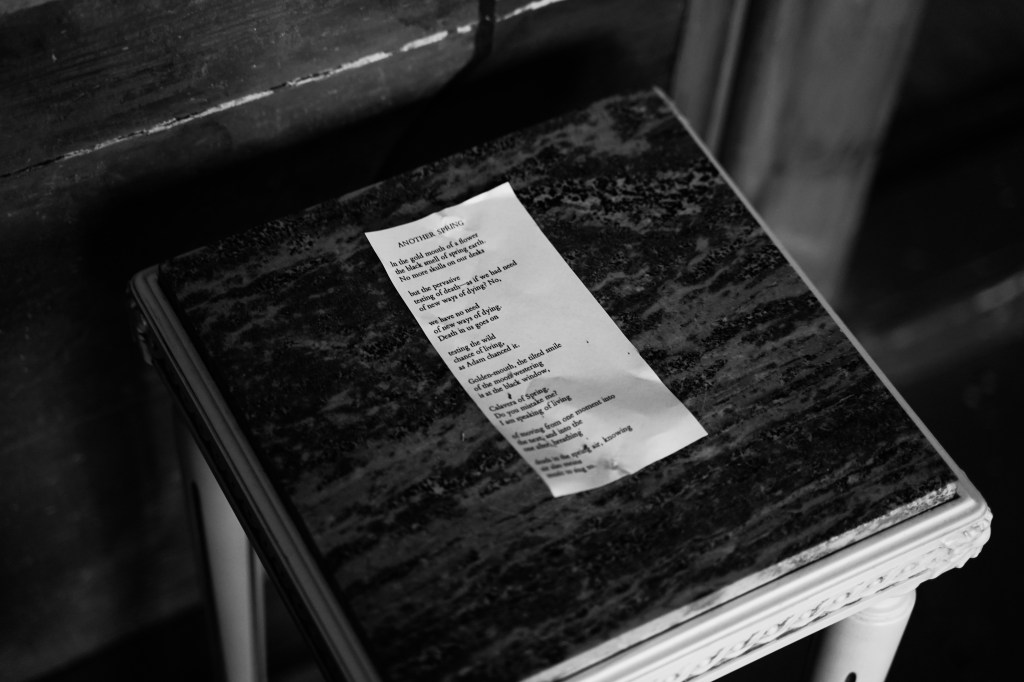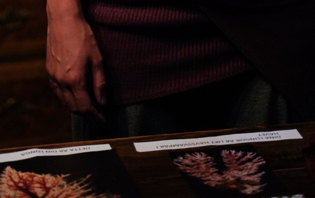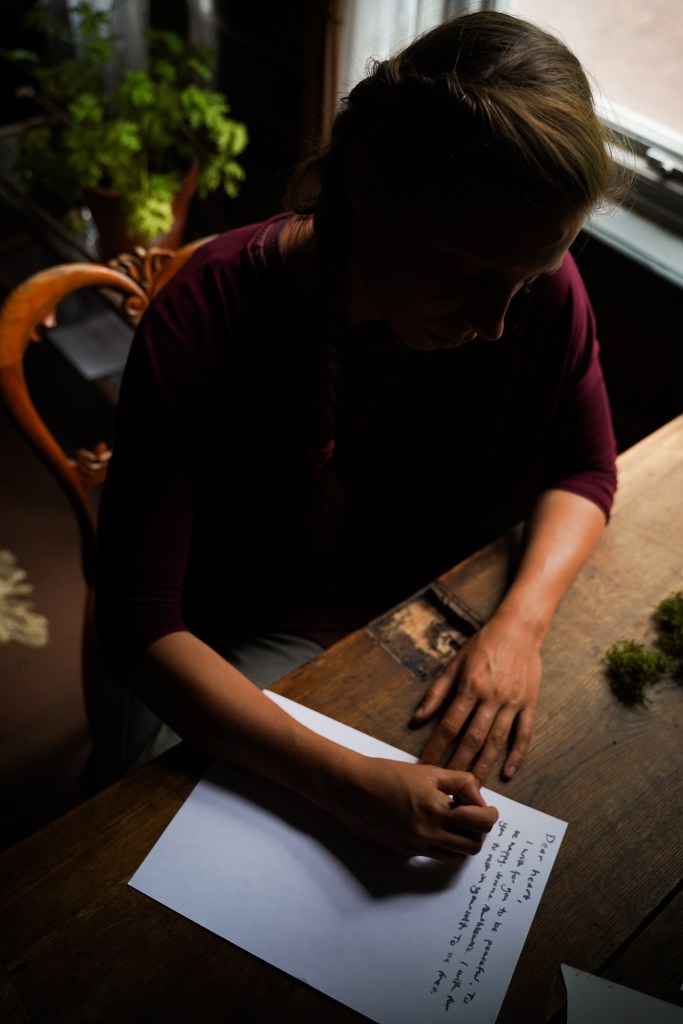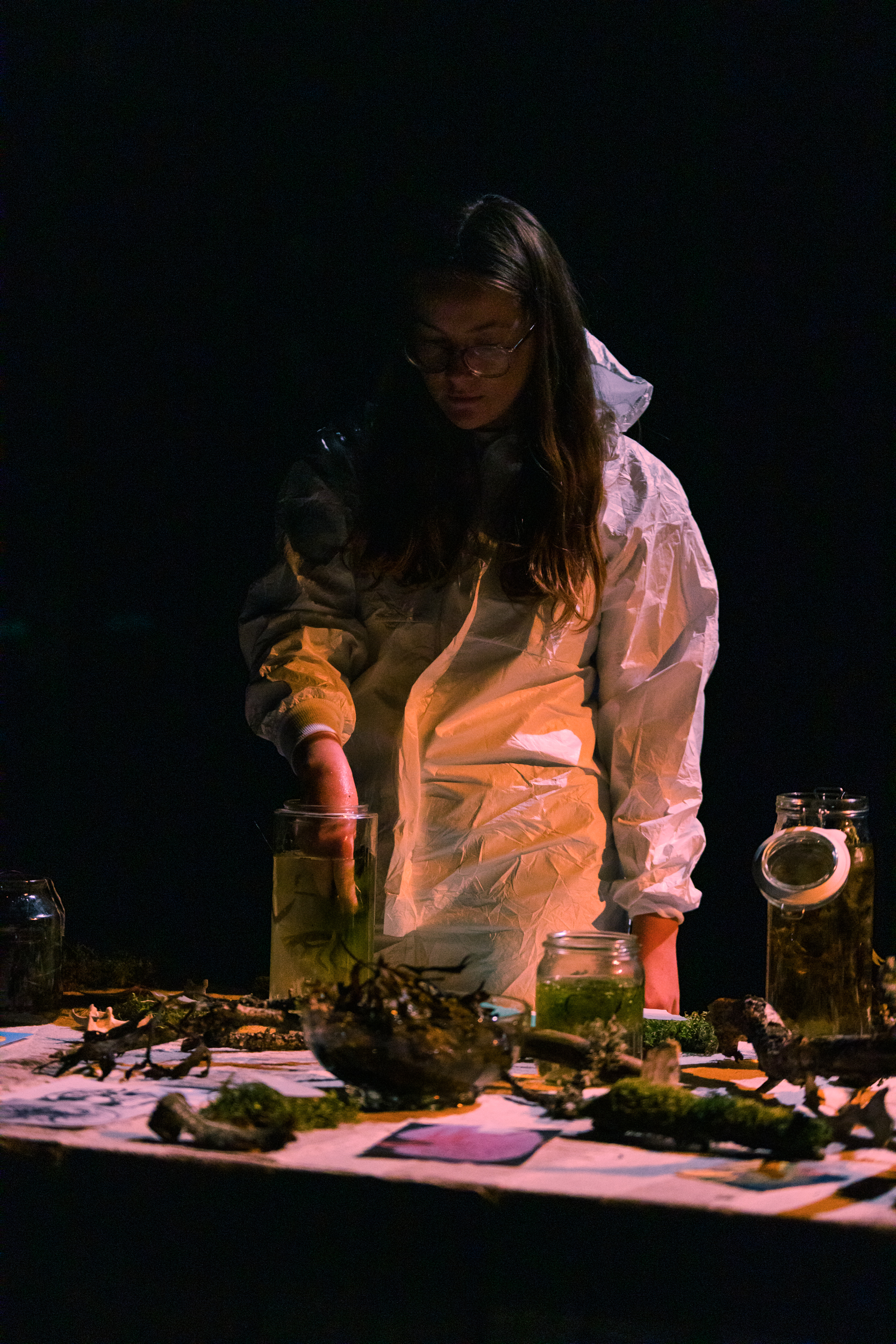Dear Earthling is an interactive one-to-one performance guiding one person at a time through a ritual which brings us close to nature’s cycles of life, death and transformation. It explores our relation to the more-than-human and questions our anthropocentric world-view. Inspired by humans evolutionary and embryological journey the ritual leads the audience through a room of their lungs, ocean and birth, a room of their heart, wood and movement, and lastly their skeleton, soil and death. During a little less than an hour the audience are invited to listen, smell, move, write, touch and be touched.