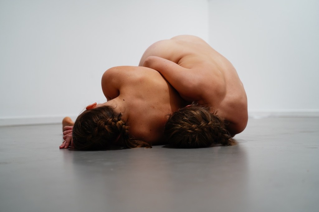Touching and being touched. The material of their bodies yield into one another. Giving in, being held. Skin against skin. Fascia against fascia. Blood. Bone against bone. Matter sinking into matter.