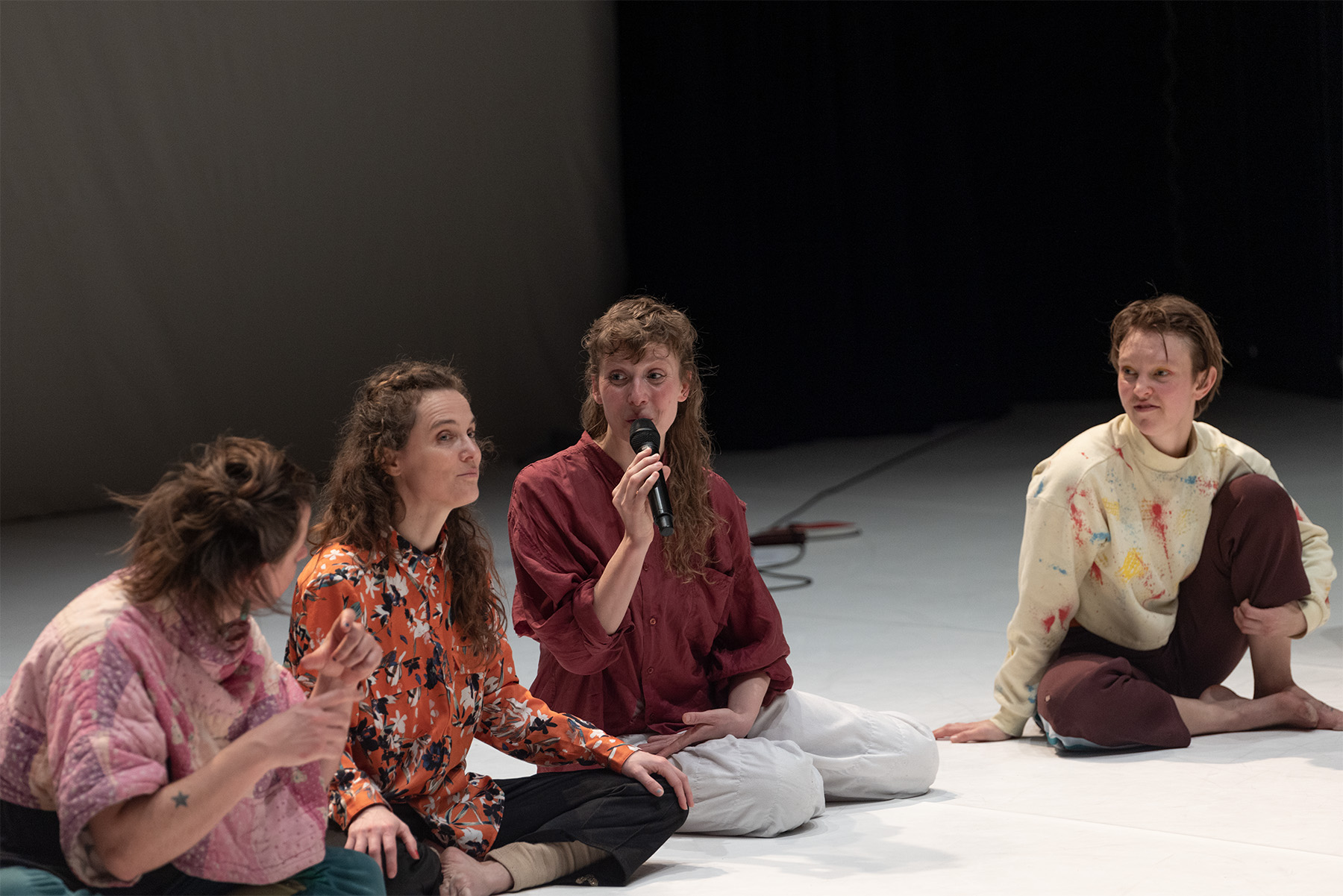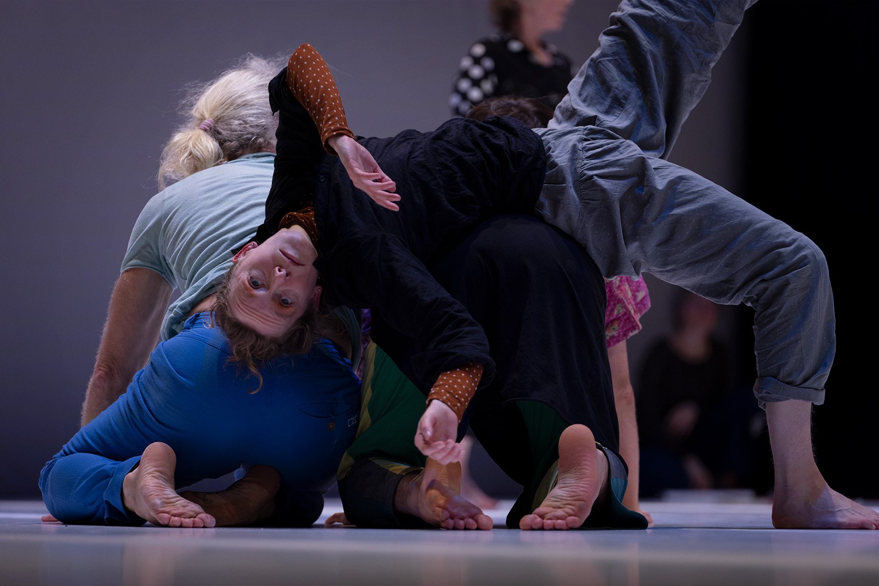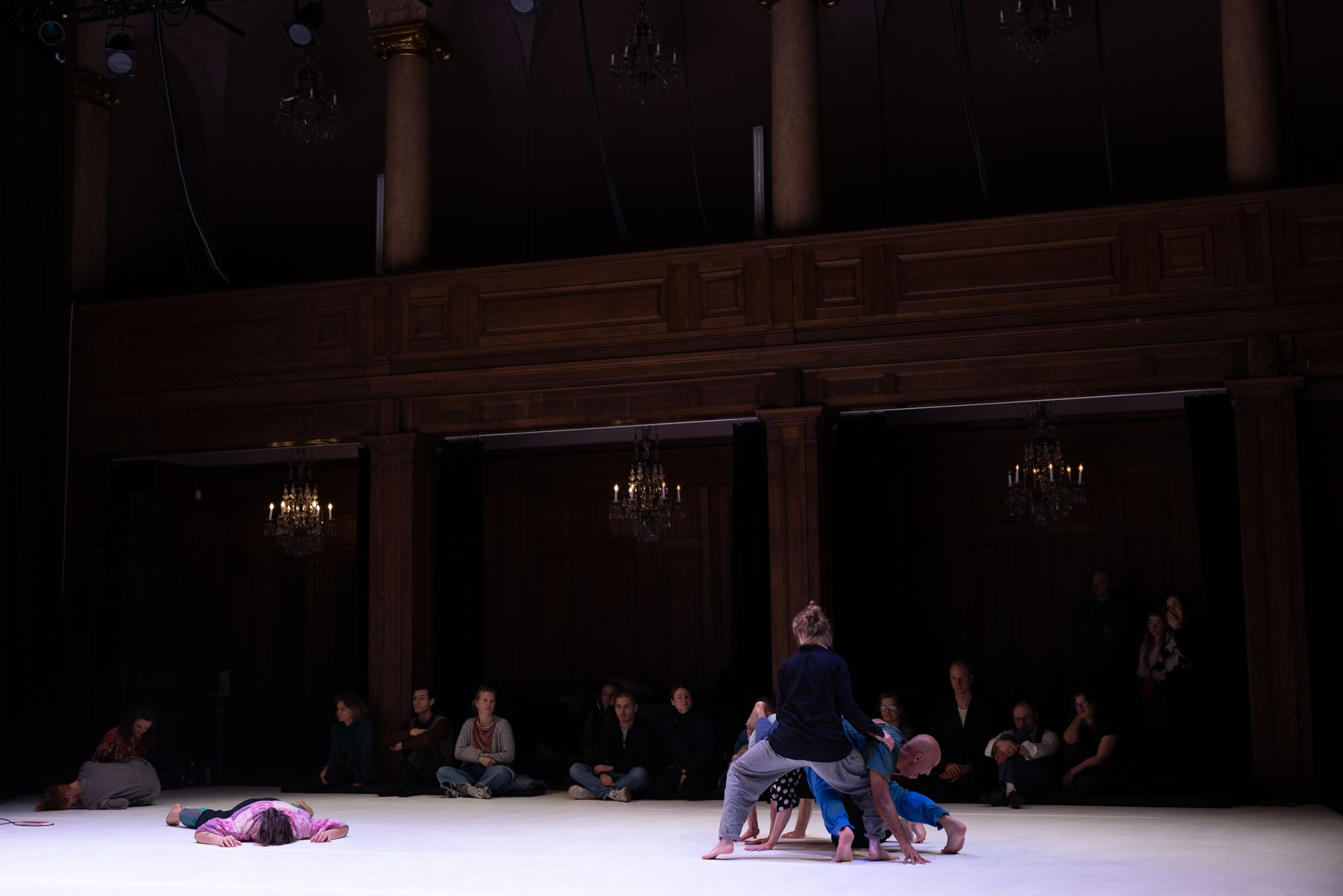Ten improvisers of different generations from Sweden, Germany, France, Denmark and New York improvise through following the score of Nancy Stark Smith called the Underscore. Unrehearsed they negotiate relations of power, intimacy, collectivity and autonomy. Sharing weight to the point that they cannot survive without each other. A reciprocal dialogue of touch with objects, bodies and the environment.